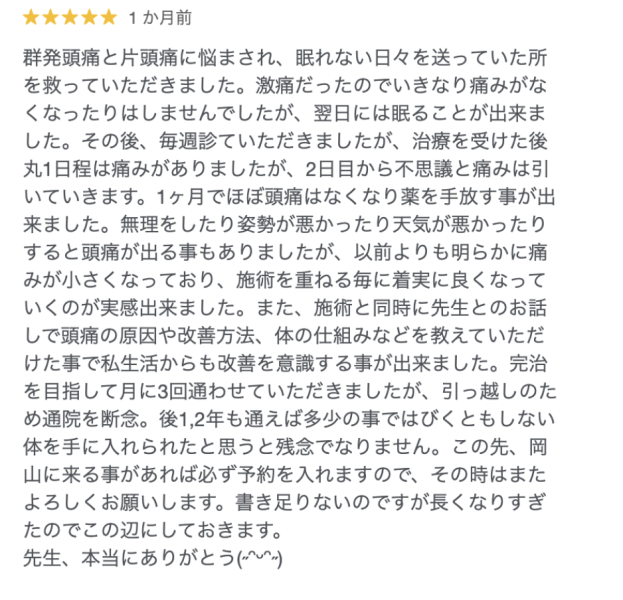これは当院に来院された患者さんの口コミですが